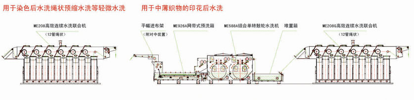 可以滿足各類織物(全棉、棉氨、化纖、絨類等克重范圍80-600GSM)的各種水洗工藝,尤其在染色后和印花后水洗工藝中大大節(jié)約了水和蒸汽等各項能耗成本,同時以優(yōu)質的設備結構和設計原理,提高了織物水洗品質,給客戶參與市場競爭提供強有力的支持。