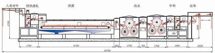 本機(jī)適于針織棉、混紡等常規(guī)布類(lèi)前處理煮煉工藝,把傳統(tǒng)的煮煉漂白工藝移到染缸外完成,可提高染色機(jī)每輪煮布時(shí)間2小時(shí),提高染色機(jī)利用率20%以上。同時(shí)省水、省電、省汽及降低COD排放等優(yōu)點(diǎn),是目前紡織印染行業(yè)前景的趨勢(shì)。
