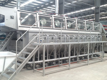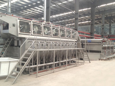 是江陰福達(dá)染整聯(lián)合機(jī)械公司歷時(shí)3年研發(fā)推出新一代高效、節(jié)能、智能繩狀水洗機(jī)組。 該機(jī)組采用模塊化設(shè)計(jì),每四組水槽為一個(gè)模塊,可以單獨(dú)進(jìn)行染色后水洗或者預(yù)縮...